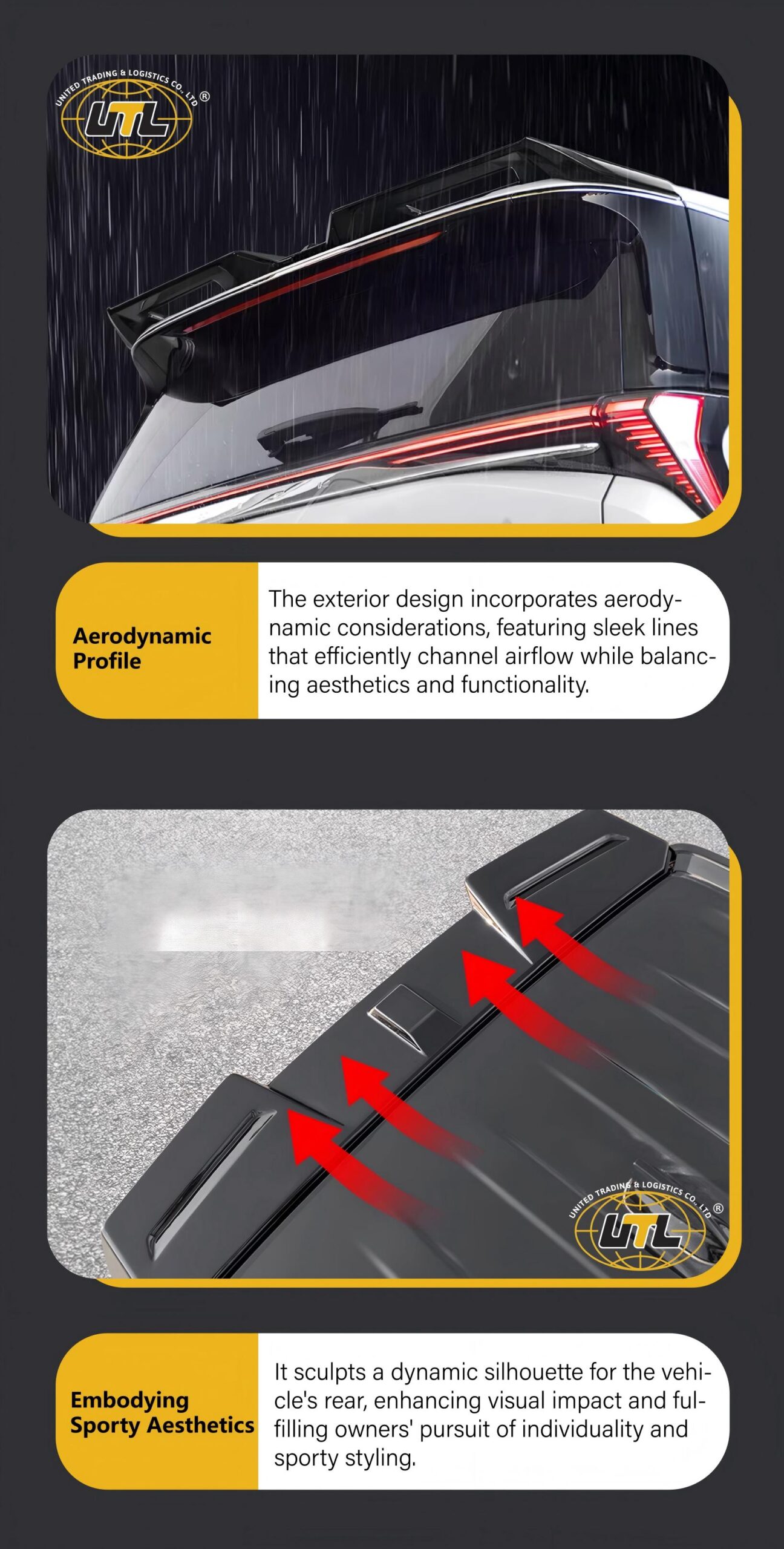 Improves high-speed stability, optimizes rear airflow and reduces turbulence