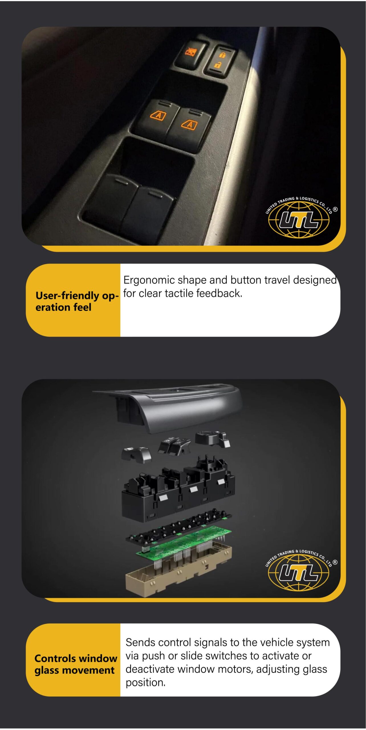 One-touch control for convenience, enhances driving comfort and safety