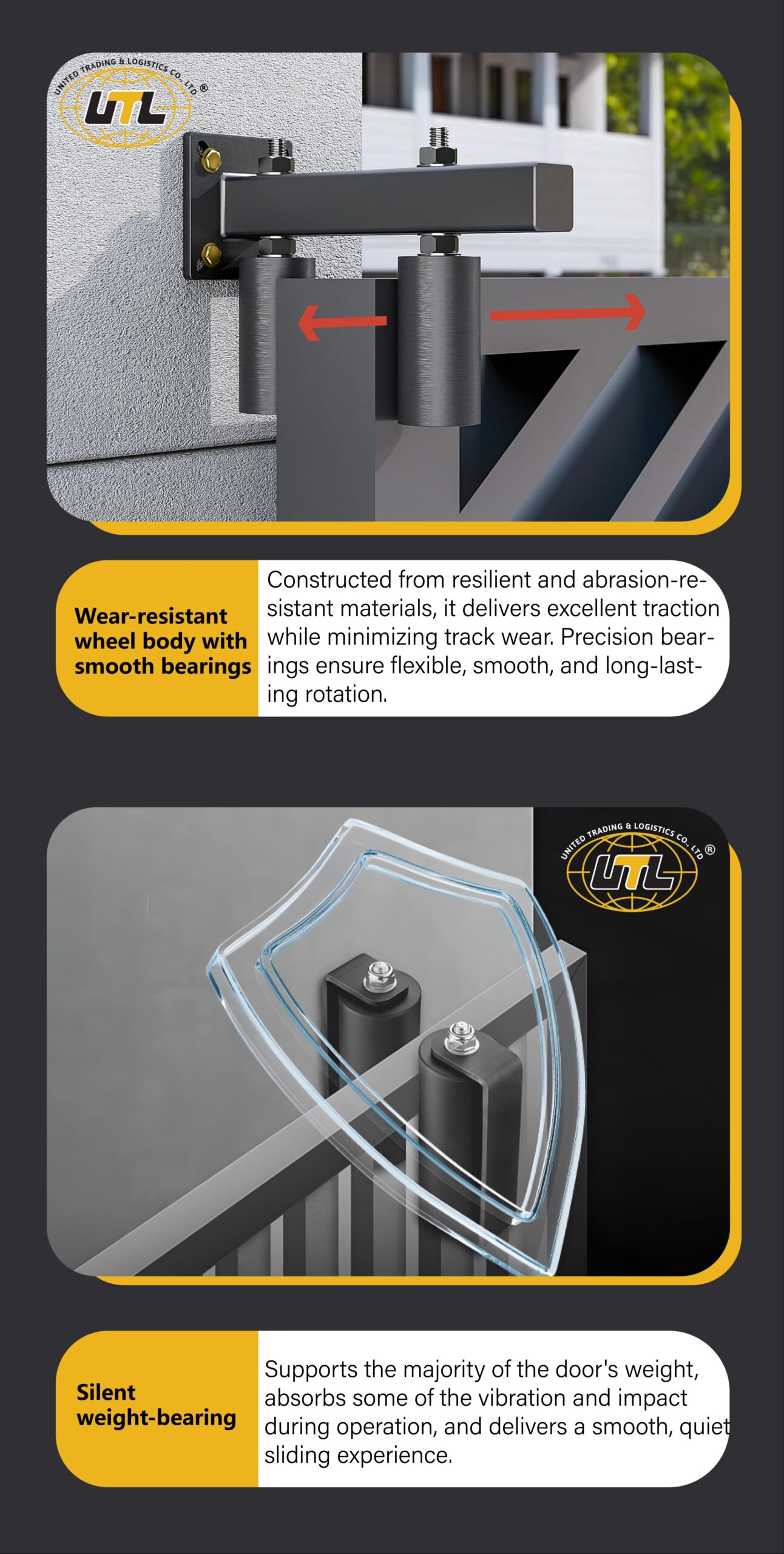Equipped with precision bearings and anti-derailment groove design for smooth operation and stable tracking, surface-hardened for enhanced wear resistance.
