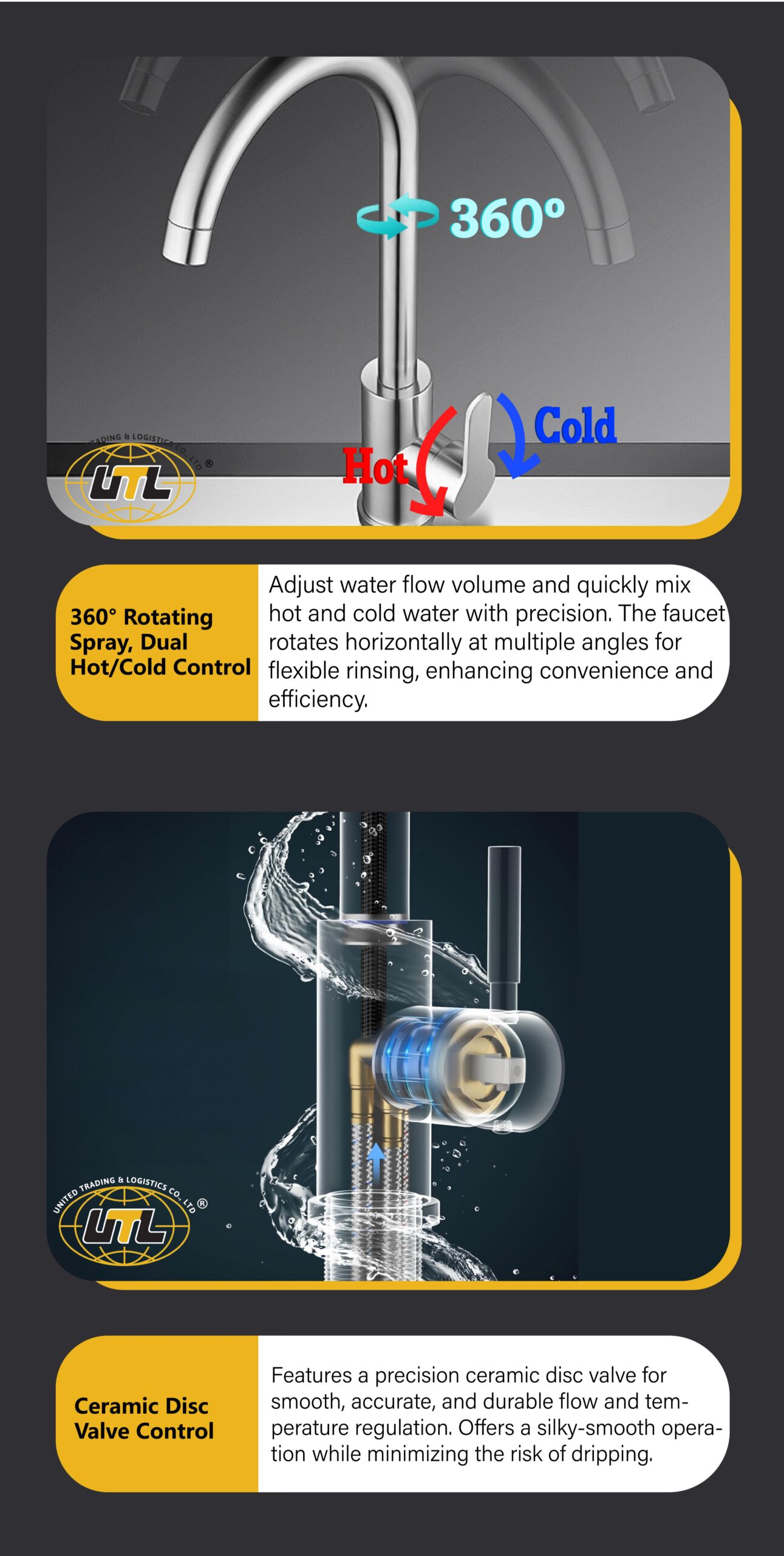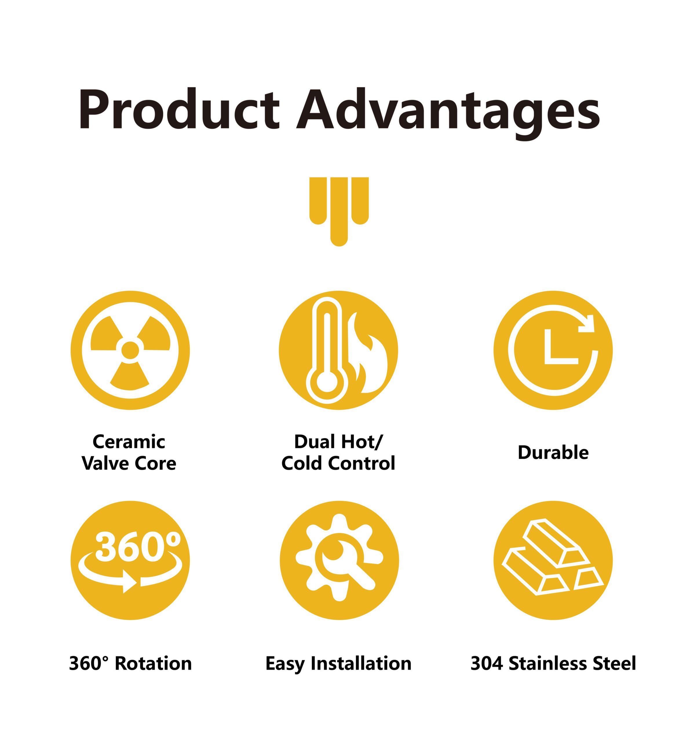 Enables quick and precise water control, saves counter space, modern design for easy cleaning, a practical and efficient core kitchen fixture.