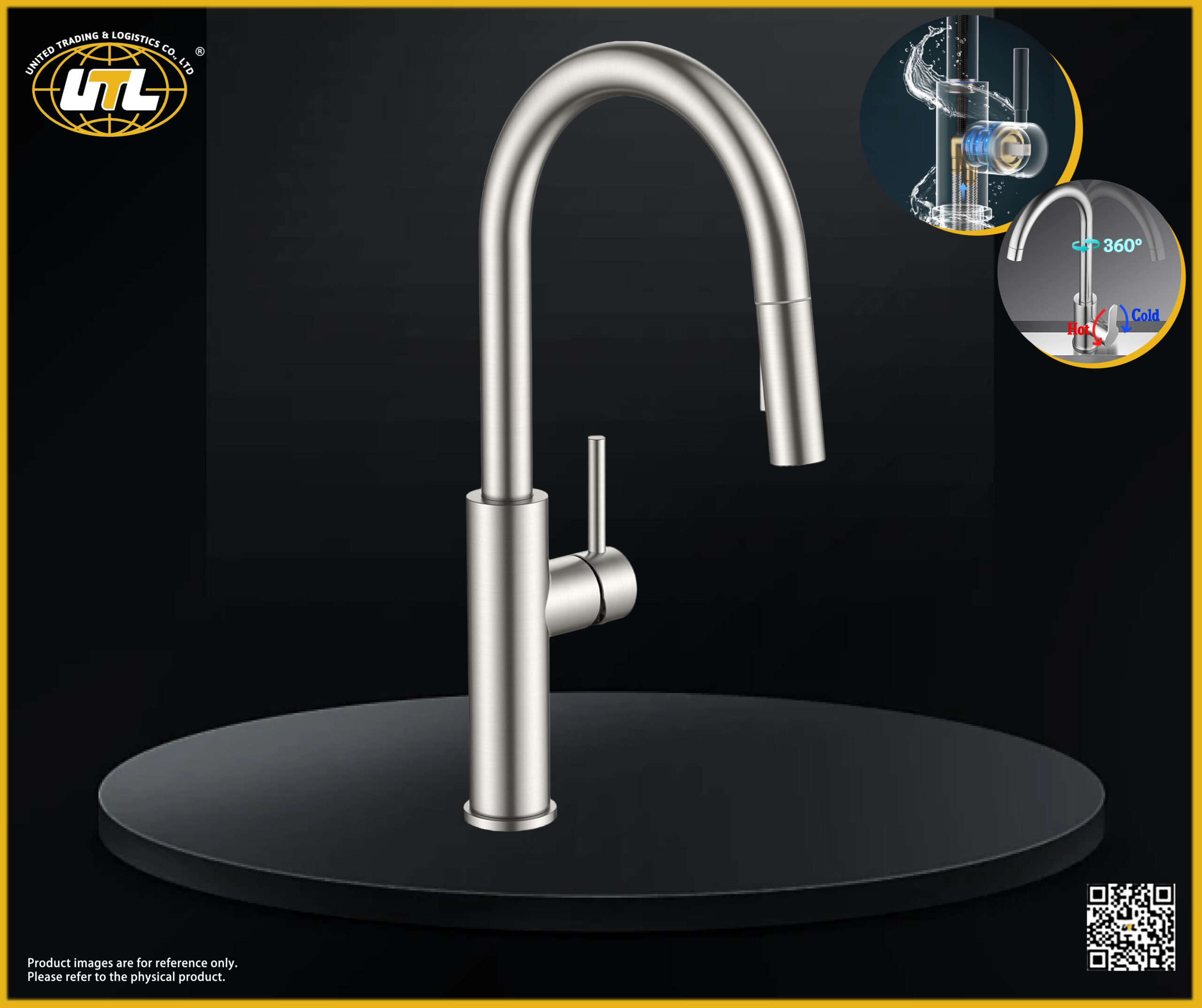 تحكم ذو ذراع واحد للماء البارد والساخن، تشغيل سهل. صنبور دوار أو قابل للسحب لاستخدام مرن. خرطوشة قرص سيراميك تضمن المتانة ومقاومة التسرب.